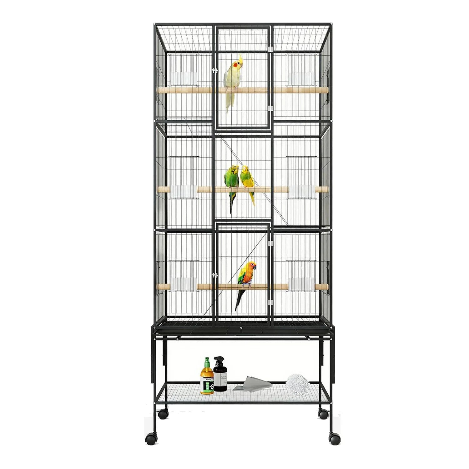 Elevate your feathered friend's habitat with the DishyKooker Bird Cage With Rolling Storage Stands And Bowls—spacious, mobile, and designed for easy daily care.