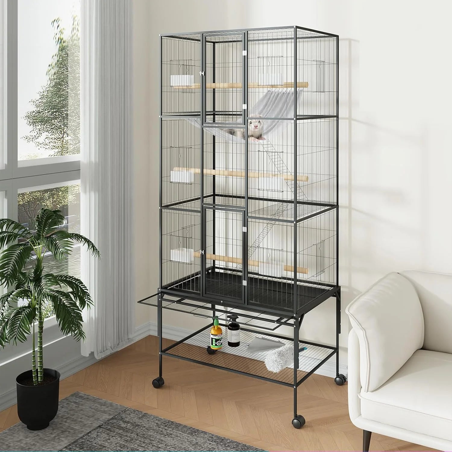 - Move it effortlessly on four 360° swivel casters and position it anywhere indoors or outdoors to fit your bird's routine.