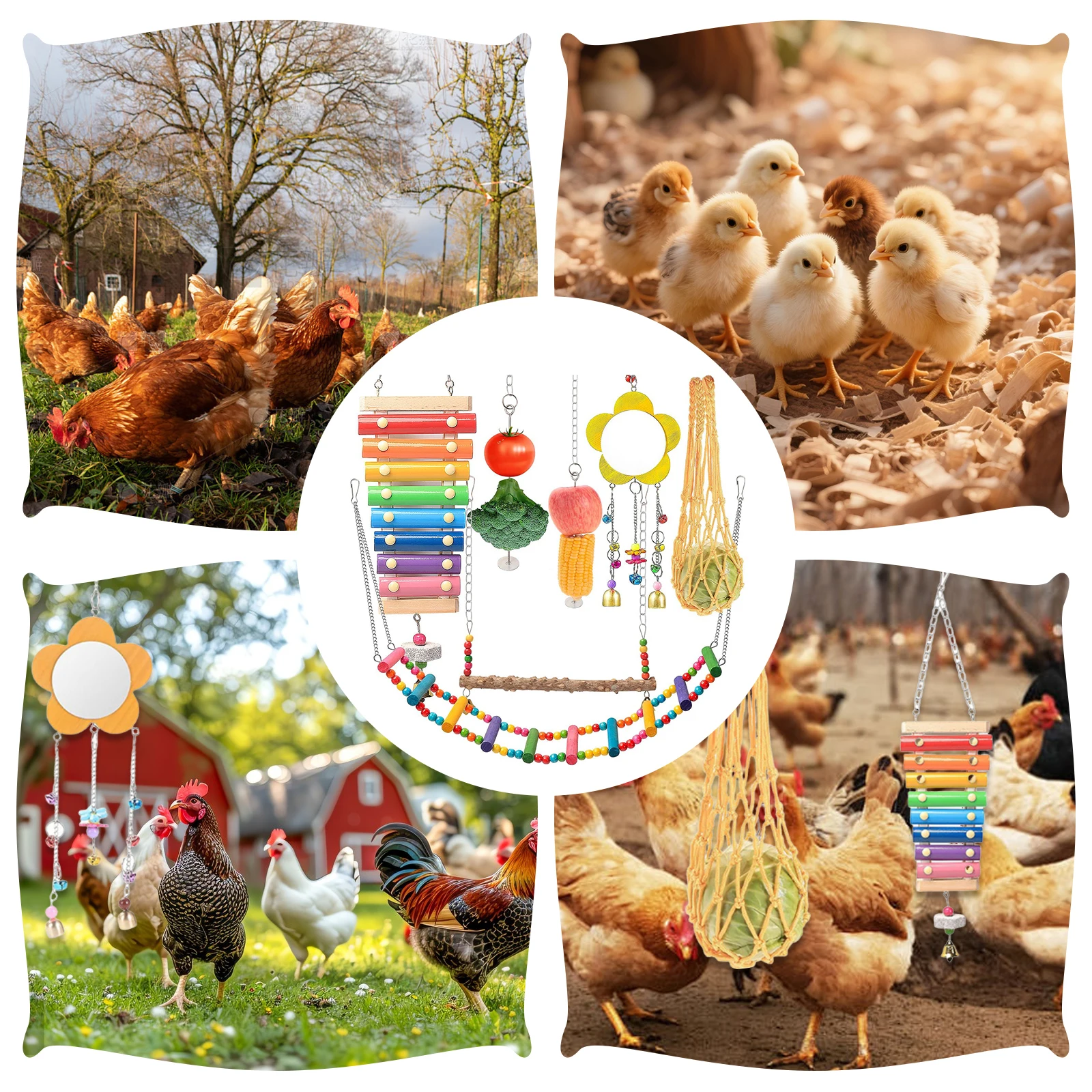 ![]() 7PCS Chewing Foraging Toy with Wooden Hanging Feeder Hanging Feeder Bell Toys Parrot Playing Training Toys for Budgerigar Parakeet Conure Cockatiel Mynah Features: 1.7-Piece Chewing Foraging Toy Set: This kit includes a chicken xylophone, swing, ladder bridge, mirror, vegetable fruit hanging feeder, and veggie string bag, making it a vibrant addition to your chicken coop and offering hours of engagement for your birds. 2.Safe Chicken Toy Set for Chickens: Made from wood and metal with plant-based dye, these chicken toy set elements are non-toxic and healthy, providing your flock with a secure and enjoyable play environment in the coop. 3.Swing and Ladder Chewing Training Toy: The chicken swing and colorful wooden bridge in this chewing training toy collection are supported by sturdy chains, suitable for chickens of all ages and breeds to exercise and relax in their enclosure. 4.Interactive Wood Xylophone Hanging Feeder Bell Toys: The xylophone uses wood and metal to create clear musical tones when pecked, offering chickens musical stimulation and enjoyment, while the hanging feeder bell toys foster curiosity and activity. 5.Stainless Steel Veggie Feeder Parrot Playing Training Toys: Use the stainless veggie skewer to serve cabbage or leafy treats and the handwoven nylon mesh hanging bag to prevent food from touching the ground, keeping snacks clean for happy and healthy chickens. Specification: Origin: Mainland China Product Dimensions: 310*180*60mm Packaging Dimensions: 350*200*70mm Material: Wood + Metal Note: Due to different monitor settings and lighting conditions, the actual color of the item may vary slightly from the pictures. Thanks for your understanding! Please allow a 1-2 cm difference in measurements due to manual measuring. ![]() 1 x Xylophone 1 x Swing 1 x Chicken Mirror 1 x Flexible Ladder 1 x Vegetable Rope Bag 2 x Hanging Feeder ![]() ![]()