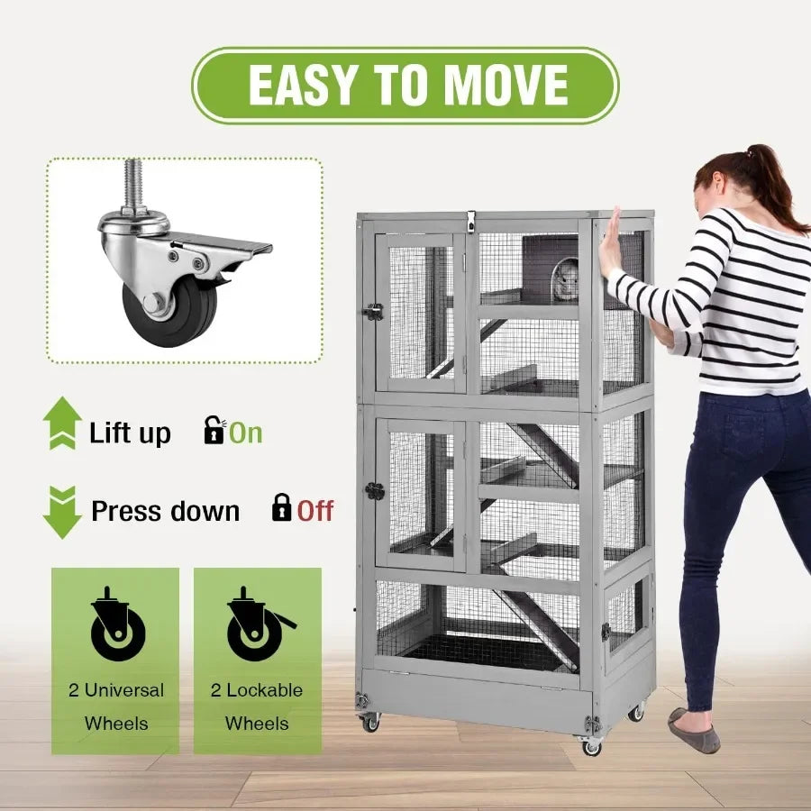 Create a thriving habitat for your small pets with a five-level wooden cage that blends space, safety, and easy upkeep.